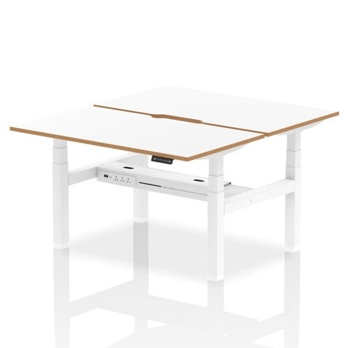Air Back-to-Back Oslo 1400 x 800mm Height Adjustable B2B 2 Person Bench Desk White Top Natural Wood Edge White Frame